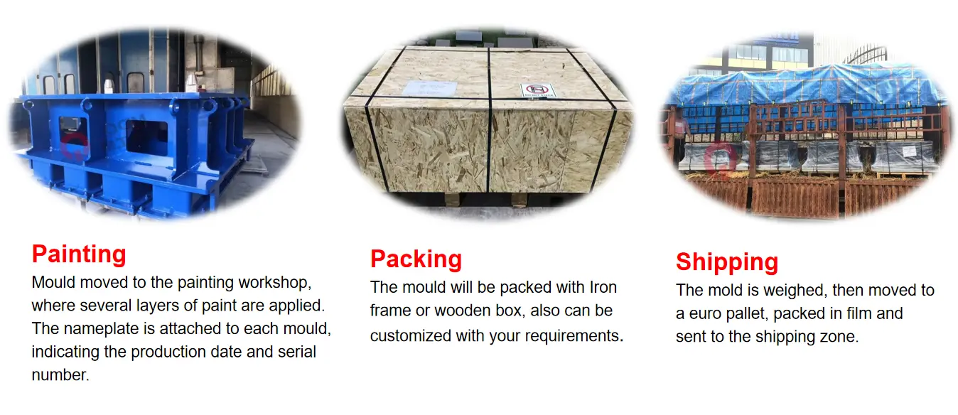 Khuôn máy móc sản xuất gạch là thiết bị không thể thiếu trong quá trình sản xuất gạch, chủ yếu dùng để đúc gạch. Nó thường được làm bằng thép hợp kim chất lượng cao, có độ chính xác cao, chống mài mòn, chống sốc và các đặc tính khác, có thể đảm bảo gạch được sản xuất có kích thước chính xác, ổn định và đáng tin cậy về chất lượng. Khuôn máy sản xuất gạch thường được làm bằng thép hợp kim chất lượng cao với công nghệ gia công tiên tiến đảm bảo độ chính xác và độ bền của khuôn. Sự lựa chọn vật liệu và quy trình này cho phép khuôn chịu được áp lực và độ mài mòn lớn hơn trong quá trình sử dụng, kéo dài thời gian sử dụng của khuôn.